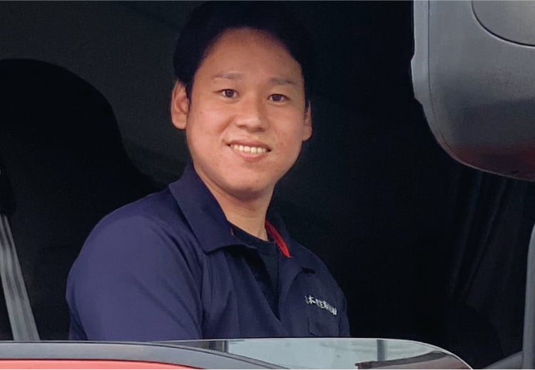車に乗ってどこかに行くのが好きで、高校生ぐらいにトラックドライバーになりたいと思っていました。昔は、荒っぽいとか怖いイメージを持っていましたが、マンツーマンで優しく教えてくれるので安心して仕事ができます。
